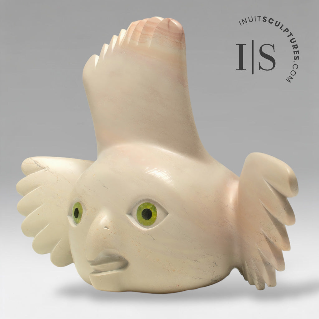 PEONY'S radiant green eyes compete for "Most Spectacular Eyes in an Inuit Carving".