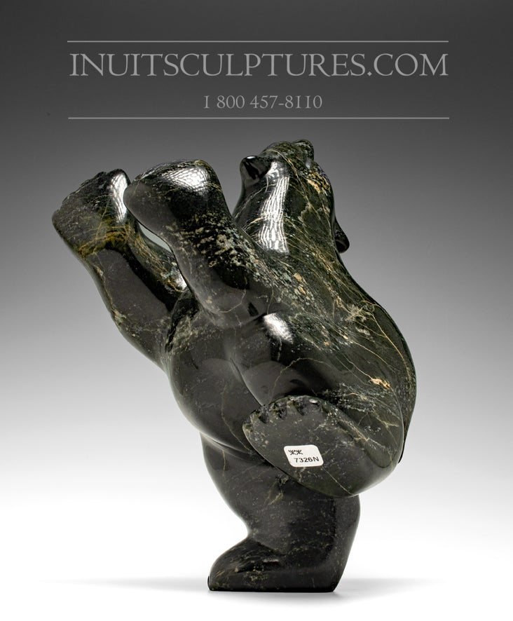 Ottokie Samayualie takes great care in choosing his stone. His carvings are made of the finest serpentine of varying green shades, and then smoothed and polished to best exhibit the lustre of the stone.