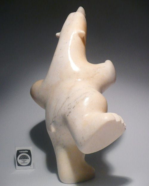 This is a superb and striking white dancing polar bear by master Inuit carver Johnny Manning from Cape Dorset.