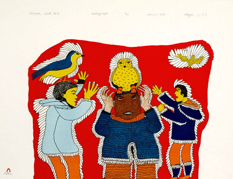 1979 SHAMAN WITH OWL by Ulayu Pingwartok
