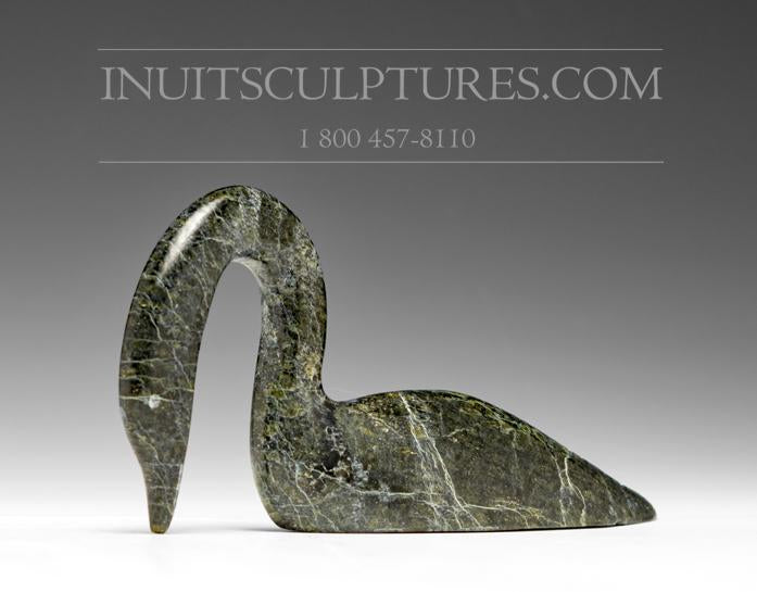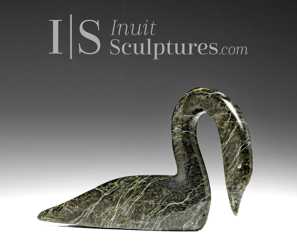 There is a reverence surrounding this sophisticated swan. Tony has chosen a beautiful complex green, black and white stone for his sculpture. The result is an earthy sophistication.