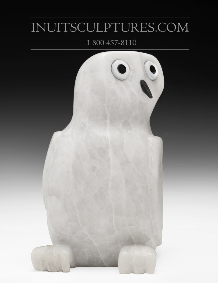 Everything about this piece is perfect from the gorgeous white stone to the captivating caribou antler eyes. The contrasting elements are exquisite. This Qiatsuk owl is a dynamic piece.