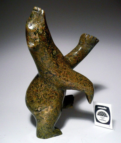 Noo Atsiaq was born in Iqaluit (Frobisher Bay), Nunavut and now lives and carves in Cape Dorset, the capital of Inuit art. His Parents are Alashua Atsiaq and Piulia Pudlalik Atsiaq. Noo has been carving since he was a young kid. He was initially taught by watching other carvers. His favorite subject is bears, dancing, diving and walking. Sculptures by Noo Atsiaq are well known and thought after in the Inuit art collectors world. He also occasionally carves people and caribou.