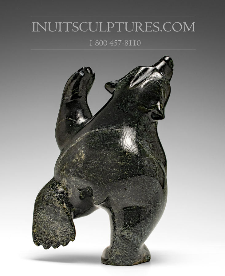 Ottokie Samayualie takes great care in choosing his stone. His carvings are made of the finest serpentine of varying green shades, and then smoothed and polished to best exhibit the lustre of the stone.