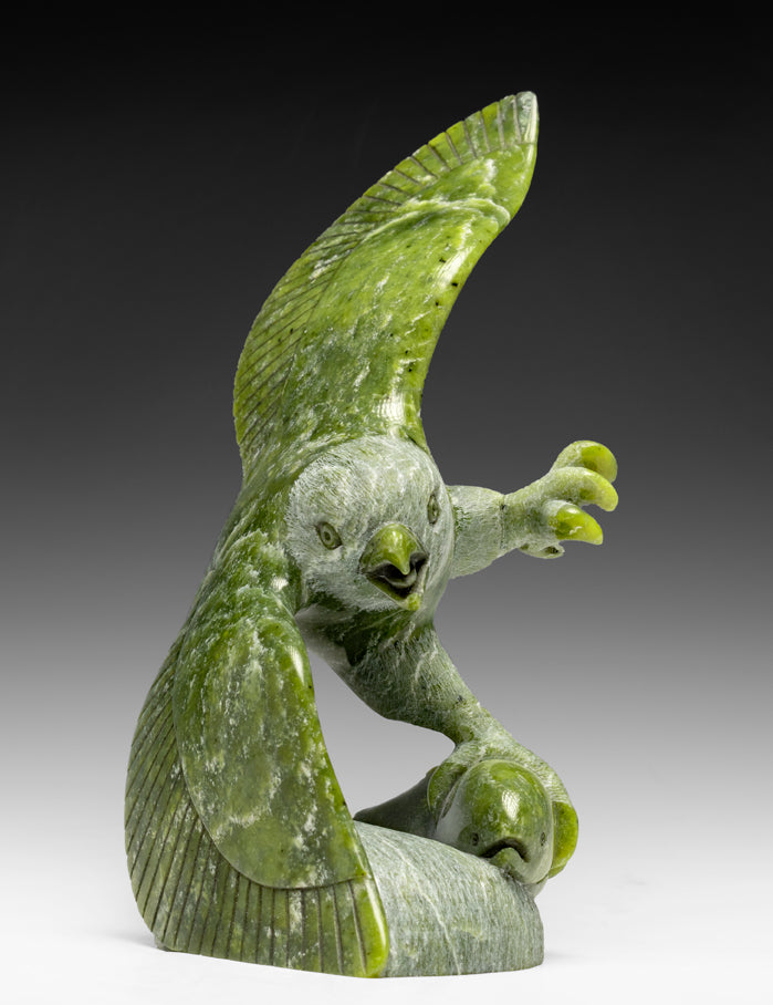 Pitseolak carves about six eagles per year because they are physically demanding and require a lot of time.