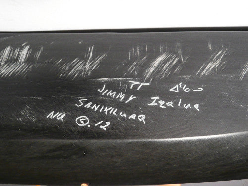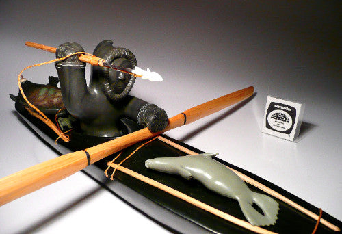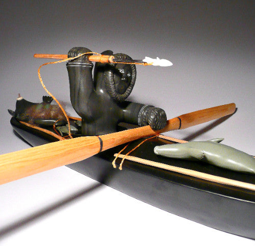This Kayak Inuit carving is a centerpiece for any Inuit art gallery. It was carved by the world famous Inuit artist Jimmy Iqaluq (top five Inuit artists in Canada). This carving is in 100% perfect condition, brand new.