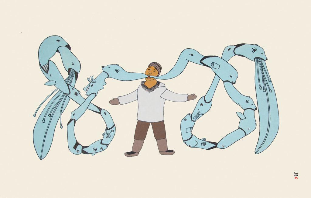 QAVAVAU MANUMIESong of AbundanceStonecutPaper: Kizuki Kozo NaturalPrinter: Qavavau Manumie61.5 x 96 cm Released in the 2018 Cape Dorset Print collection