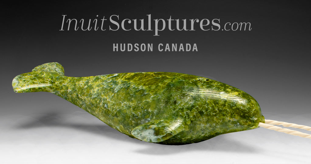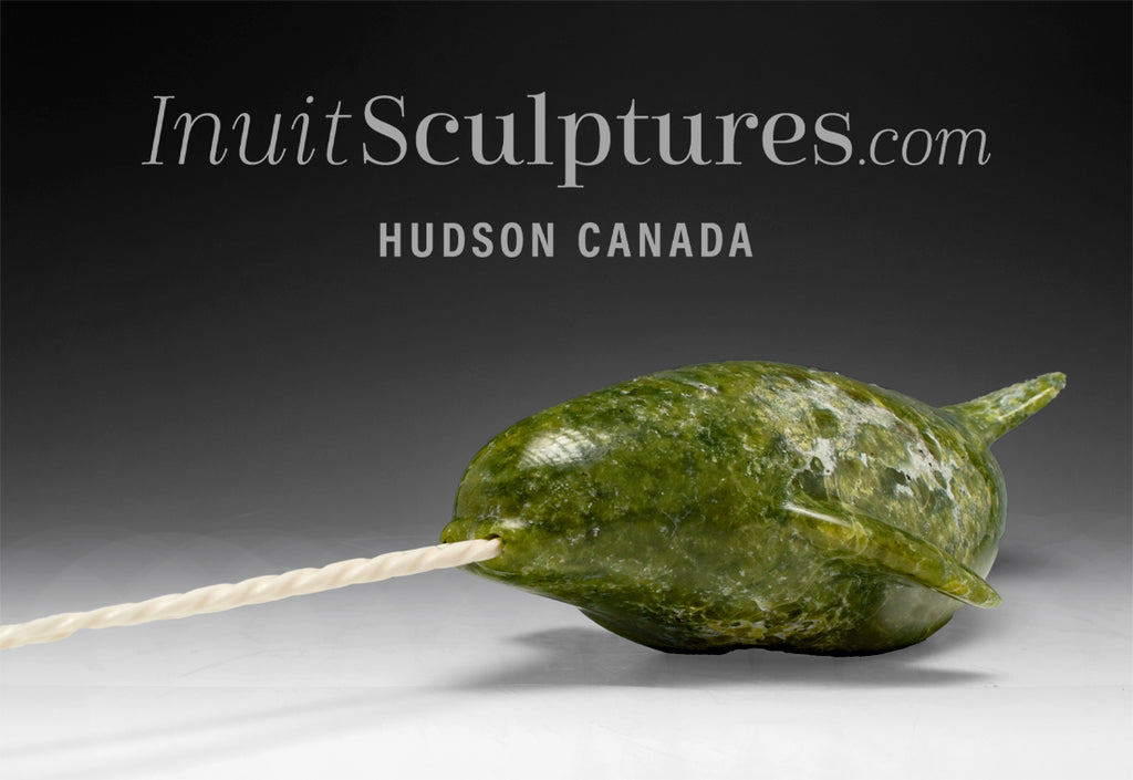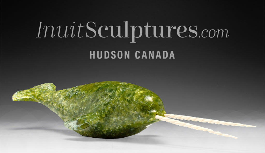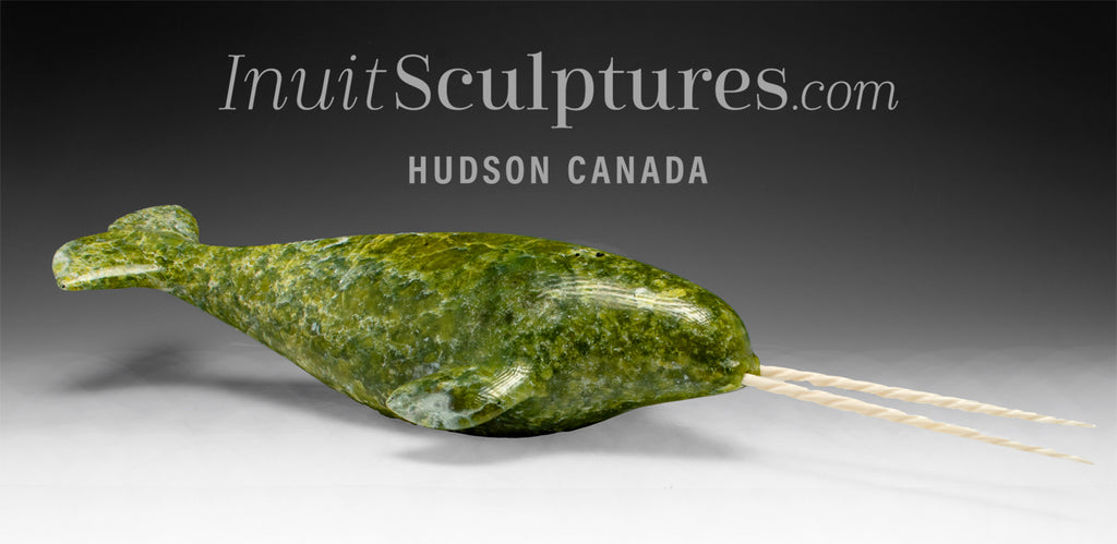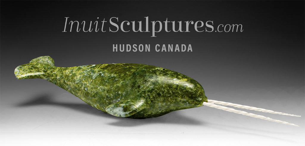 / 18" Narwhal With Rare Double Tusks by Emataluk Saggiak *Toothy Grin*