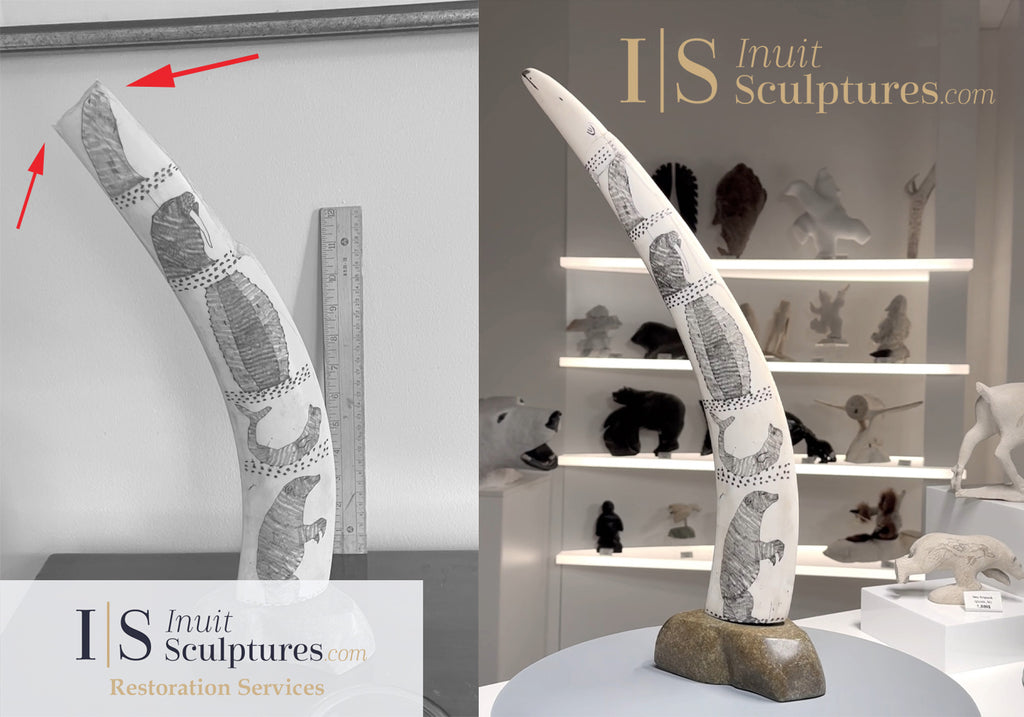 A recent client from Westmount, Montreal, sent us a beautiful embroidered walrus tusk by the late Nuyaliaq Qimirpik.