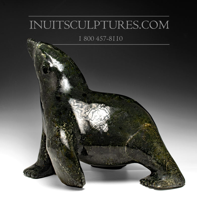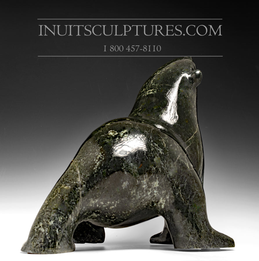 This sleek Walking bear is a rare beauty. Nuna seldom uses dark Serpentine stone because it is extremely dense and difficult to carve. The more common green serpentine stone is softer and easier to carve.