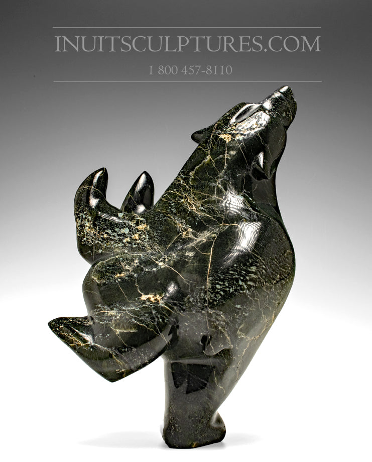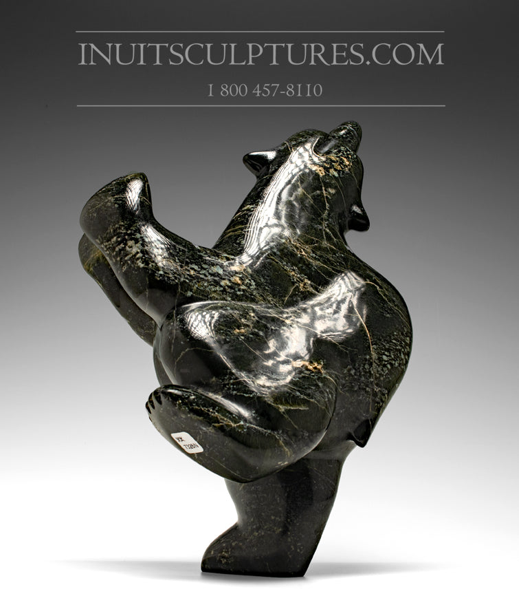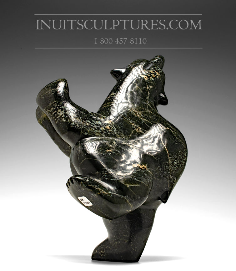 Ottokie Samayualie takes great care in choosing his stone. His carvings are made of the finest serpentine of varying green shades, and then smoothed and polished to best exhibit the lustre of the stone.