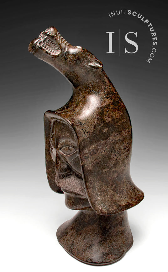 I look at this man's face and see strength but also tenderness.  This is perhaps the most exquisite face I have ever seen among Inuit carvings.