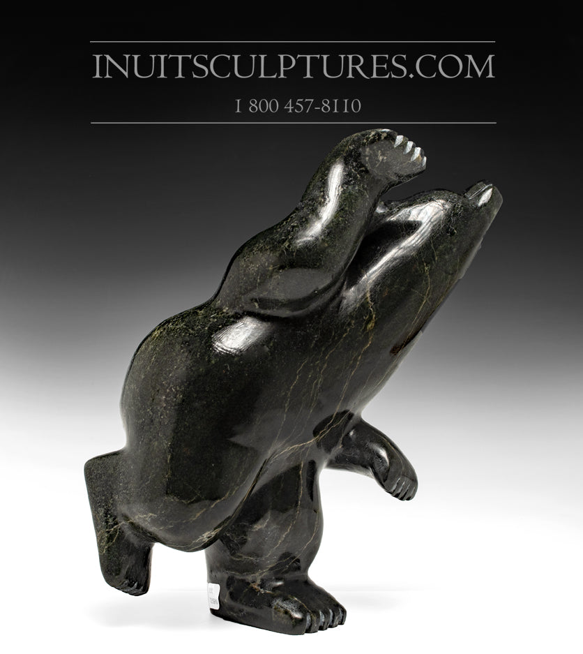 This is a beautiful composition of a dancing bear by world renowned artist Palaya Qiatsuq. He is extremely famous for his dancing owls.