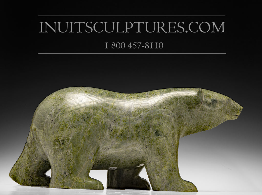 This monumental work is possibly unique in Adla's oevre in that it strays from his more medium sized format of dancing bears. Adla is just as famous for his depiction of dancing & walking bears as is the likes of other greats like Nuna Parr and Joe Kavik. He has created an impressive body of sculptures depicting human figures and other animals as well, but it is his affinity with the dancing bear that has captured the imagination of collectors.