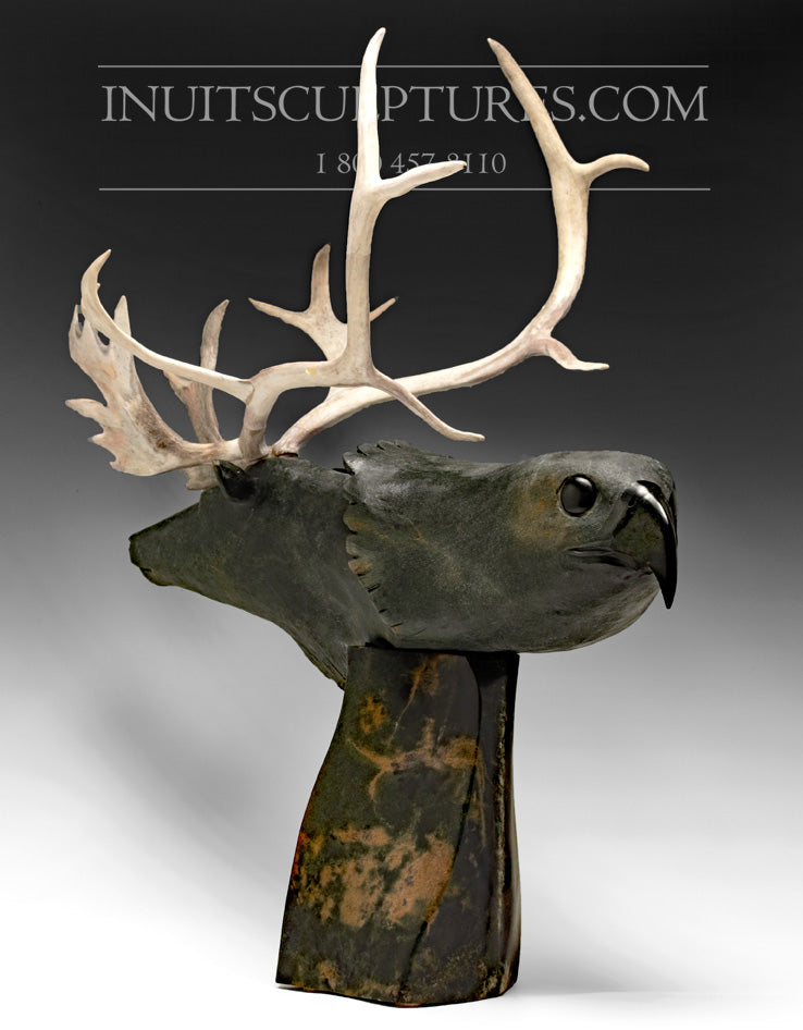 The black matte stone sanctions the transition between the caribou and the hawk. The two meld together to become one BUT still you see two separate entities. Is it even possible for a mammal and a bird to share such intimacy?