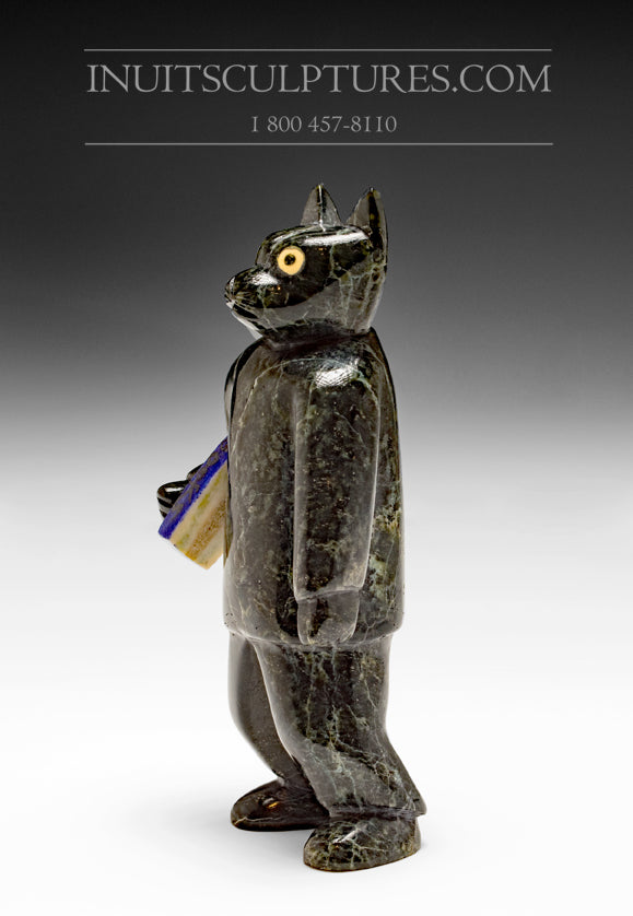 The jet black stone of Cat Man glimmers and sparkles under the light. Going back to school is on everyone's minds these days - especially for these two pals.