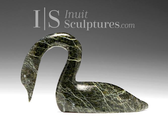 There is a reverence surrounding this sophisticated swan. Tony has chosen a beautiful complex green, black and white stone for his sculpture. The result is an earthy sophistication.