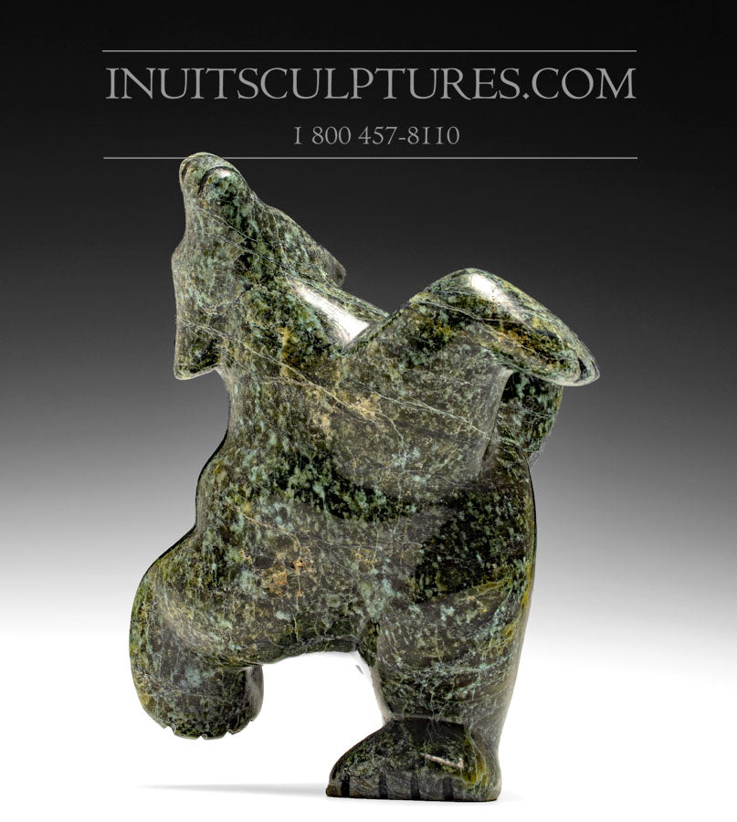 Ottokie Samayualie takes great care in choosing his stone. His carvings are made of the finest serpentine of varying green shades, and then smoothed and polished to best exhibit the lustre of the stone.