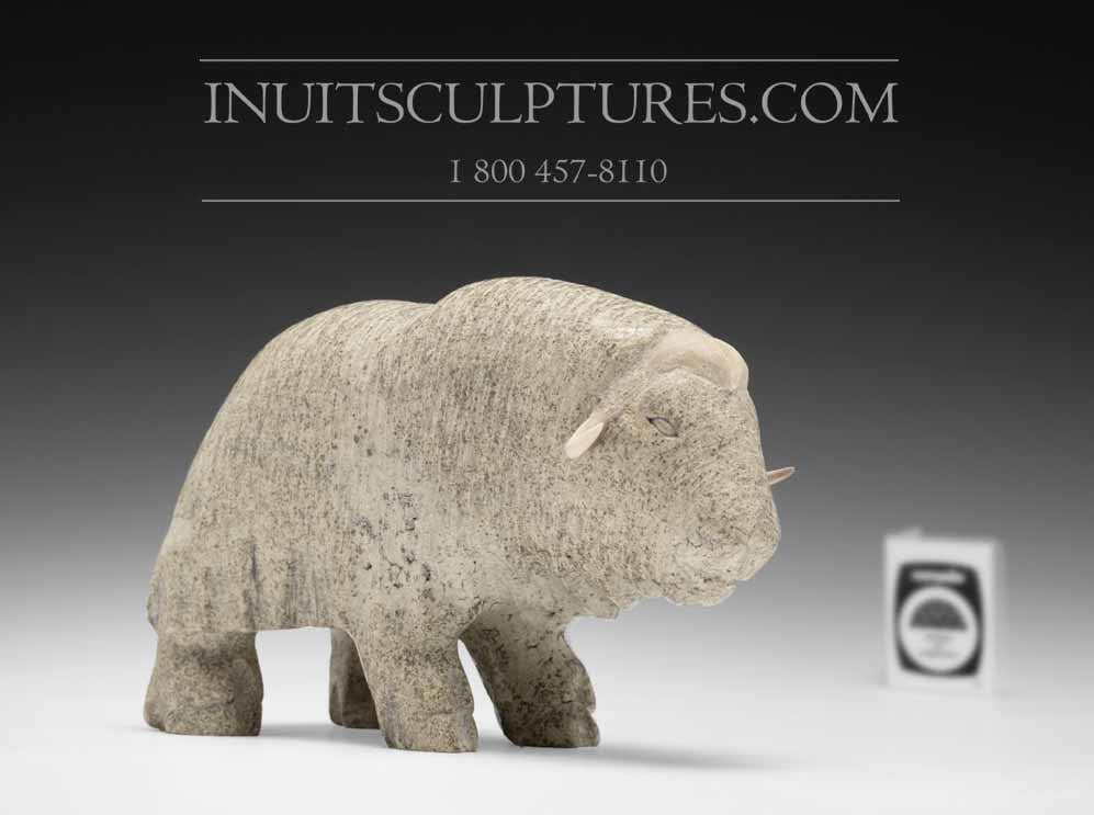 This sculpture is the perfect carving for an avid collector looking to expand their muskoxen but also fitting for a first time collector or as a gift of Canadian art to any art aficionado.