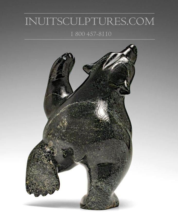 Ottokie Samayualie takes great care in choosing his stone. His carvings are made of the finest serpentine of varying green shades, and then smoothed and polished to best exhibit the lustre of the stone.