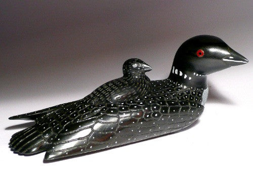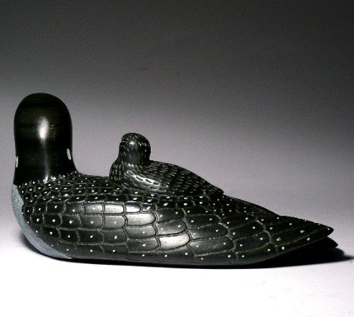 This is another outstanding completely original mother loon and her baby by world famous Inuit artist Jimmy Iqaluq from Sanikiluaq.