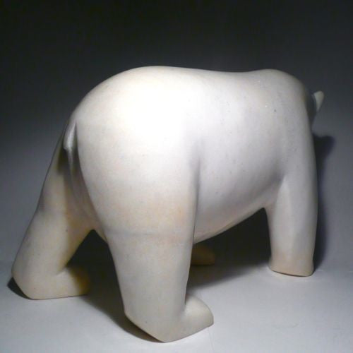 The main attraction of this particular bear is its sheer size and might. It conveys power and might to the audience while maintaining artistic beauty, style and refinement. It is not just a large bear alone, it is also perfectly refined and well proportioned as well as beautifully detailed. There are absolutely no flaws on this bear. The stone is smooth and radiates a gorgeous white.