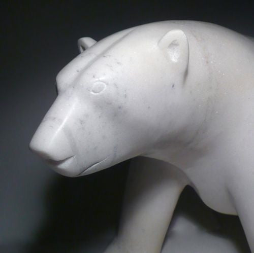 This is an immensely powerful big bear by world famous Inuit artist, Kooyoo Peter. Kooyoo Peter is an established, very well known artist and is notably famous for his large, marble walking bears like this one. They have toured several international and domestic exhibitions.
