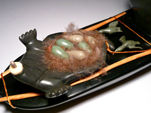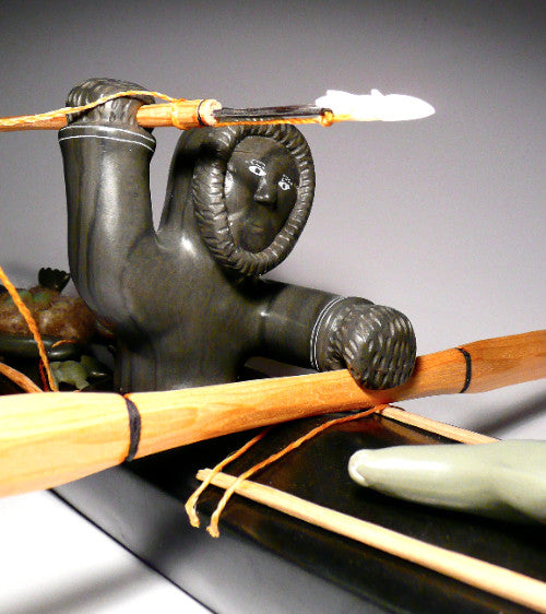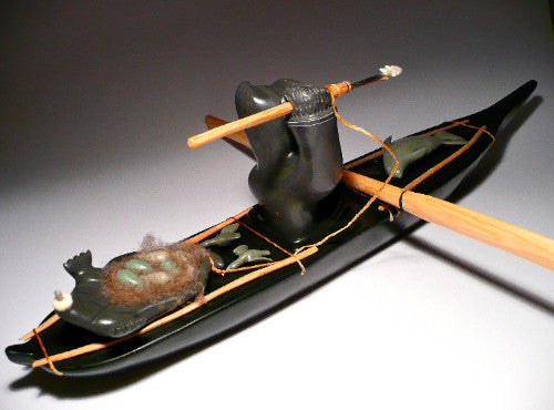 This Kayak Inuit carving is a centerpiece for any Inuit art gallery. It was carved by the world famous Inuit artist Jimmy Iqaluq (top five Inuit artists in Canada). This carving is in 100% perfect condition, brand new.