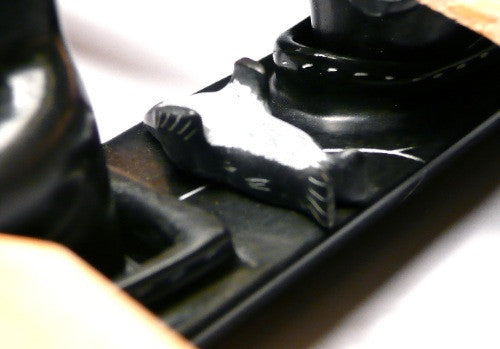 This is a nice composition of two Inuit hunters in a Kayak. It is made from jet black shiny argillite stone from Sanikiluaq. Kayak pieces are very in-demand compositions by Inuit art collectors. Before the Inuit came into contact with snow machines, their main methods of transportation were dog sleds and kayaks. This gave them the opportunity to hunt and fish and follow the animal migration patterns. The Inuit were very skilled Kayakers. They would insulate their Kayaks with seal skin. This acted as an incredible sealant that allowed the kayak to be dry and waterproof inside.