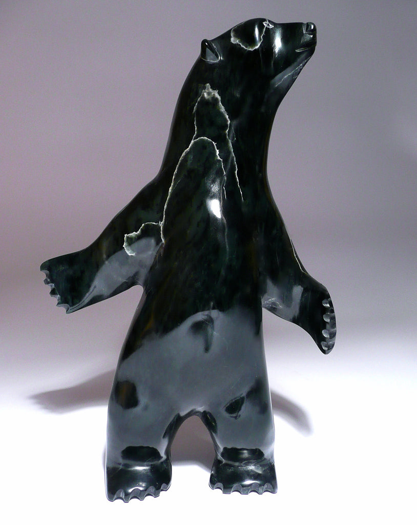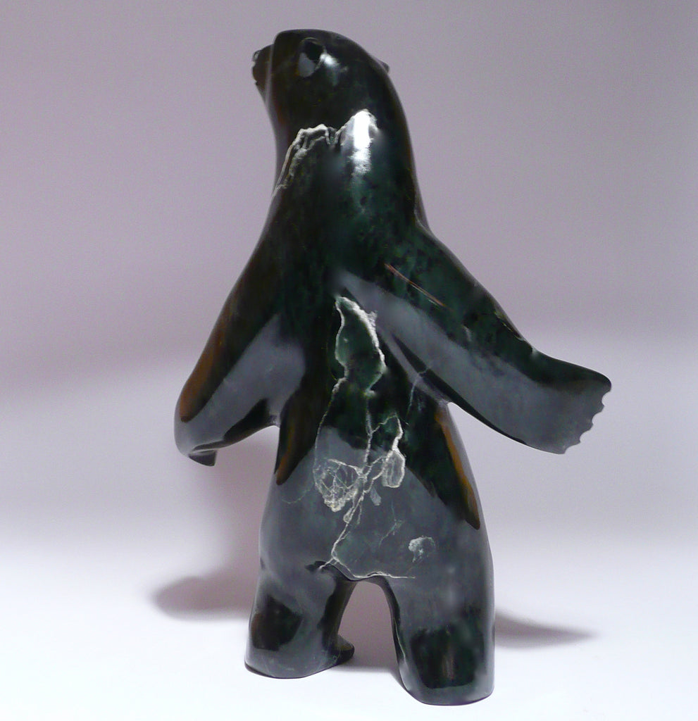 Noo Atsiaq was born in Iqaluit (Frobisher Bay), Nunavut and now lives and carves in Cape Dorset, the capital of Inuit art. His Parents are Alashua Atsiaq and Piulia Pudlalik Atsiaq. Noo has been carving since he was a young kid. He was initially taught by watching other carvers. His favorite subject is bears, dancing, diving and walking. Sculptures by Noo Atsiaq are well known and thought after in the Inuit art collectors world. He also occasionally carves people and caribou.