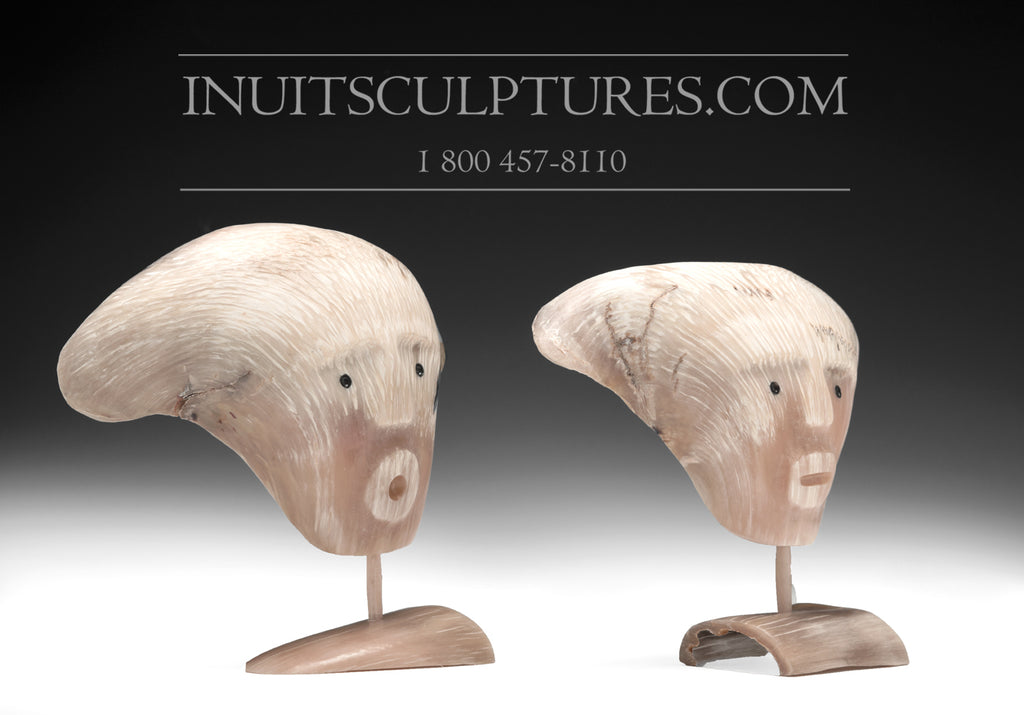 Buddy gently interrogates the muskox horn into two charming visages.  One is smiling,. The other is contemplative.
